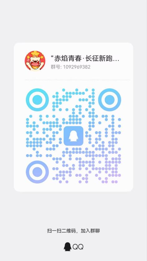 2、报名方式:参加活动请扫描下方二维码进入通知群,在线填写《“赤焰青春·长征新跑”趣味运动会活动预报名表》。